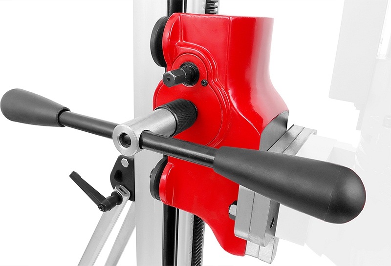 - Двухскоростной редуктор каретки: каретка имеет двухскоростной редуктор подачи алмазной коронки, что позволяет производить бурение разных материалов