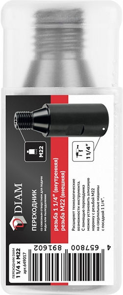 Цена и технические характеристики переходника для алмазных коронок Diam 1 1/4 мама-M22 папа: